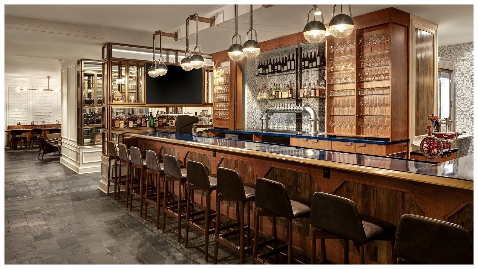 SCOPE: Design Le Meridien hotel’s new restaurant with day & night bar, lobby, lobby lounge, the private “Steve McQueen” lounge room, private dining room, finishes and specifications, custom lighting and art features